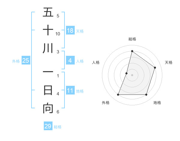 五十川 一日向さんを姓名の画数から五運を鑑定