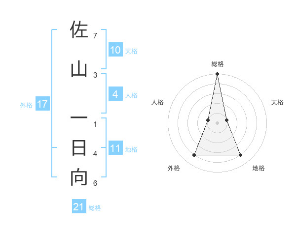 佐山 一日向さんを姓名の画数から五運を鑑定