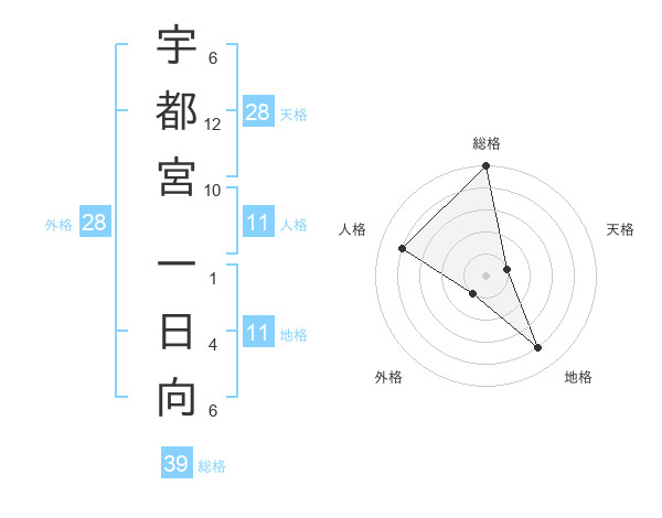 宇都宮 一日向さんを姓名の画数から五運を鑑定