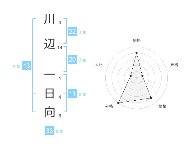 川辺 一日向さんを姓名の画数から五運を鑑定