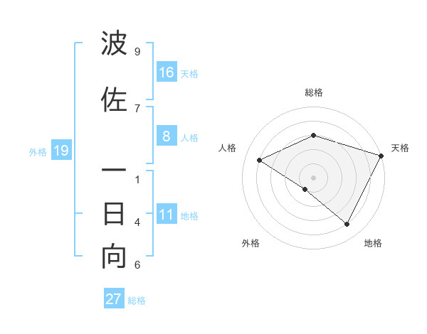 波佐 一日向さんの総格は27画の3点!
