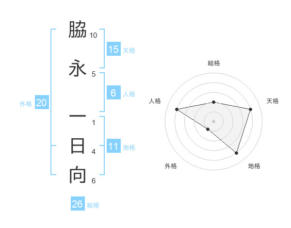 脇永 一日向さんを姓名の画数から五運を鑑定