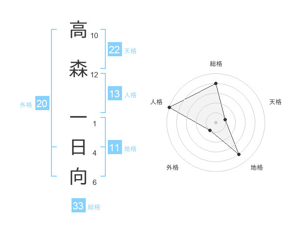 高森 一日向さんの総格は33画の4点!