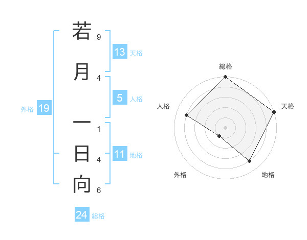 若月 一日向さんの天格は13画の5点