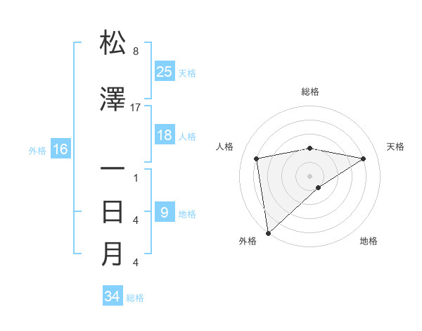 松澤 一日月さんの総格は34画の2点!
