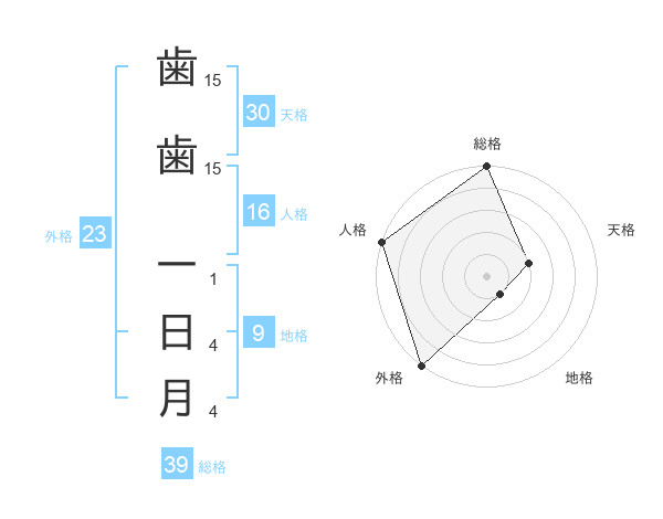 歯歯 一日月さんを姓名の画数から五運を鑑定