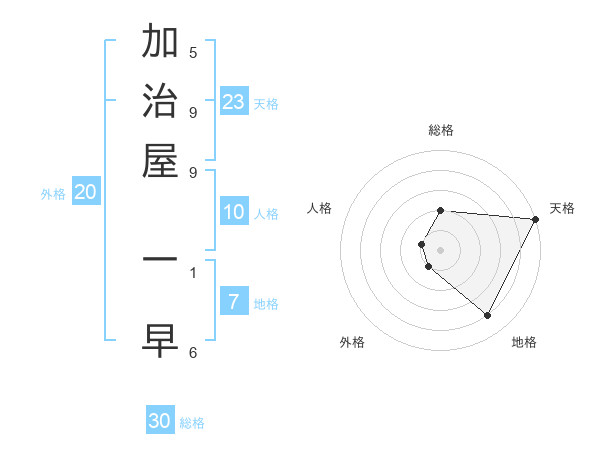加治屋 一早さんを姓名の画数から五運を鑑定