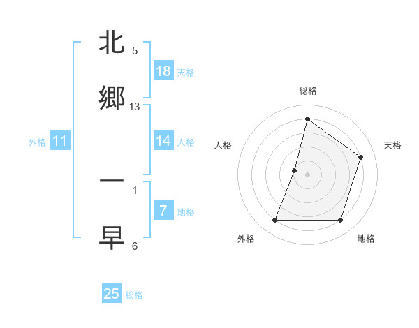 北郷 一早さんの総格は25画の4点!