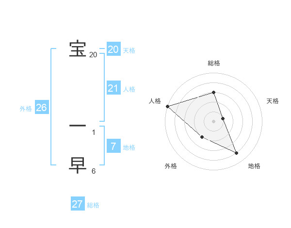 宝 一早さんの天格は20画の1点!