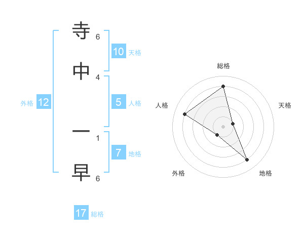 寺中 一早さんの総格は17画の4点!