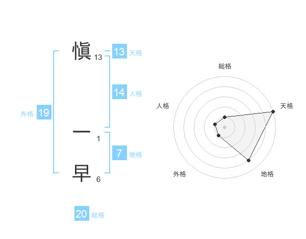 愼 一早さんの天格は13画の5点!