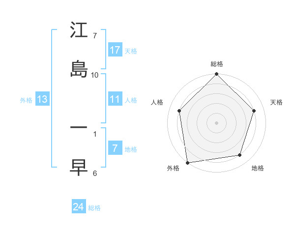 江島 一早さんの外格は13画の5点!