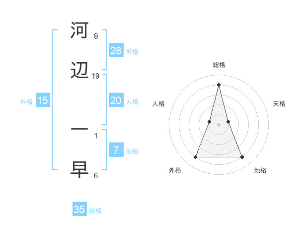 河辺 一早さんの総格は35画の4点!
