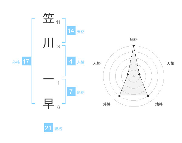 笠川 一早さんの総格は21画の5点!