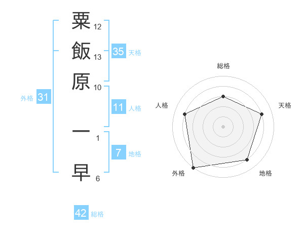 粟飯原 一早さんを姓名の画数から五運を鑑定
