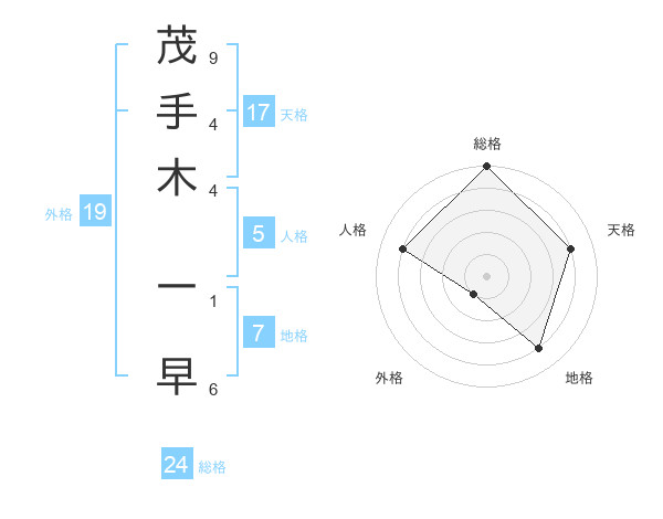 茂手木 一早さんを姓名の画数から五運を鑑定