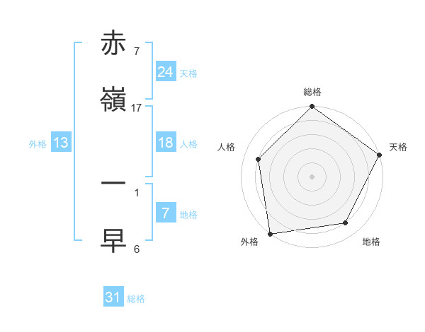 赤嶺 一早さんを姓名の画数から五運を鑑定