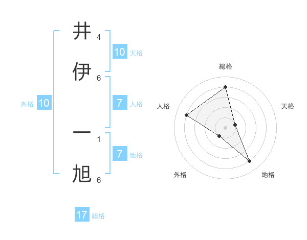 井伊 一旭さんの総格は17画の4点!