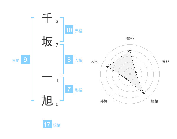 千坂 一旭さんの天格は10画の1点!