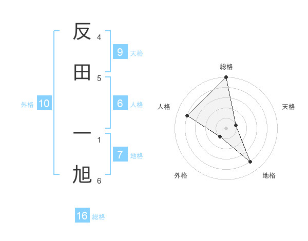 反田 一旭さんの総格は16画の5点!