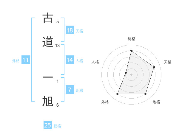 古道 一旭さんの総格は25画の4点!