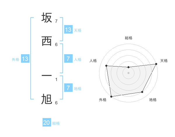 坂西 一旭さんを姓名の画数から五運を鑑定