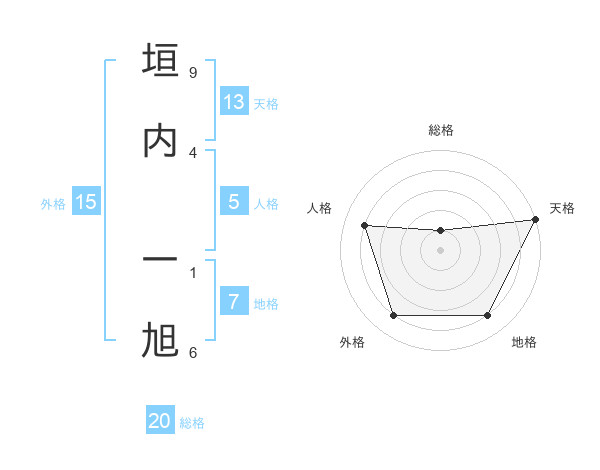 垣内 一旭さんを姓名の画数から五運を鑑定