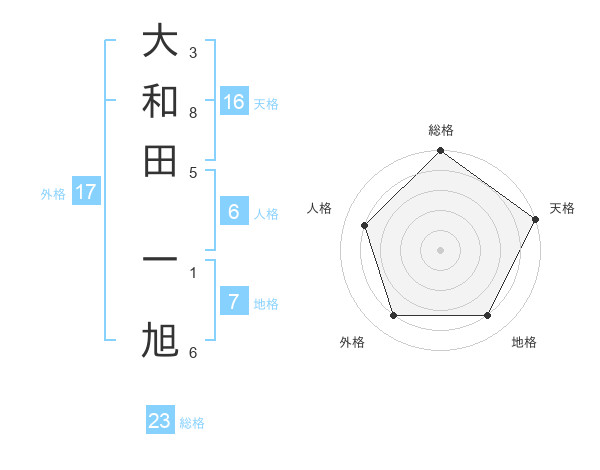 大和田 一旭さんの総格は23画の5点!