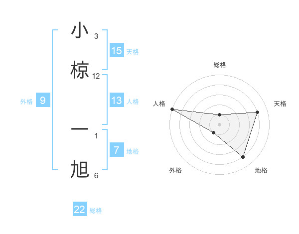 小椋 一旭さんの総格は22画の1点!