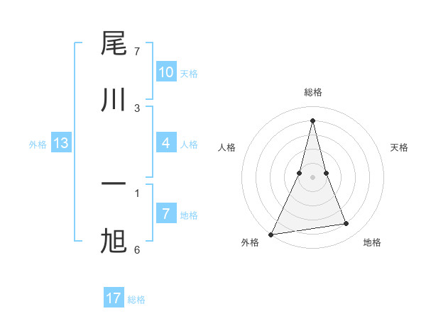 尾川 一旭さんを姓名の画数から五運を鑑定