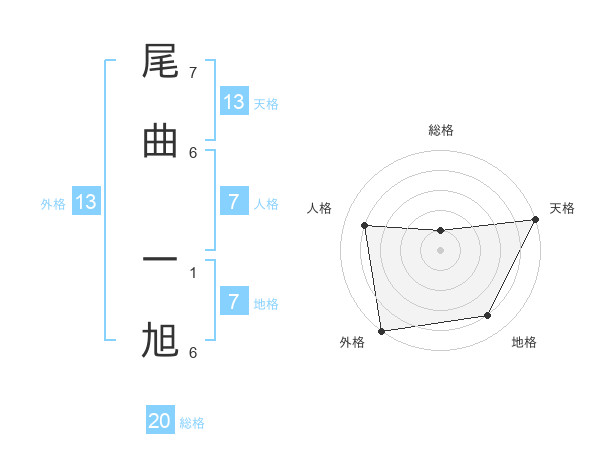 尾曲 一旭さんの総格は20画の1点!