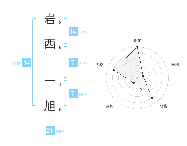 岩西 一旭さんの総格は21画の5点!