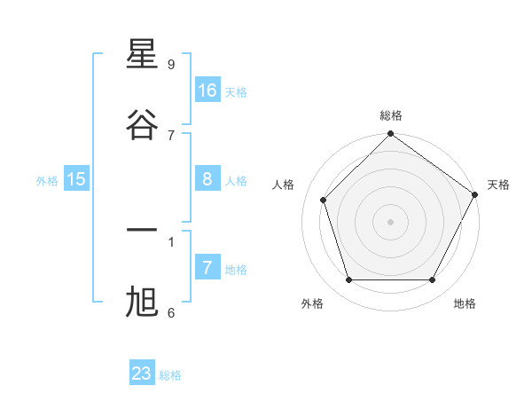 星谷 一旭さんの総格は23画の5点!