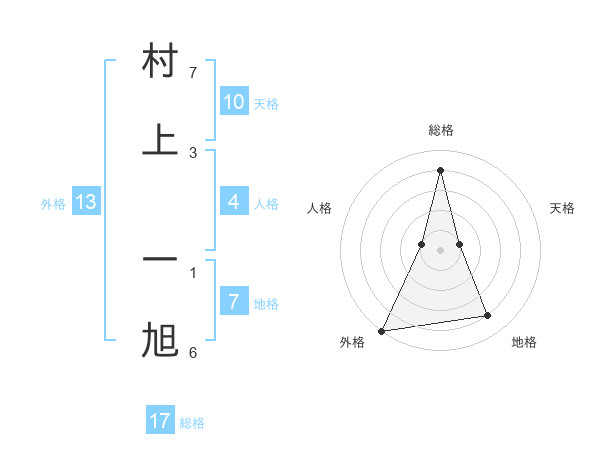 村上 一旭さんの総格は17画の4点!