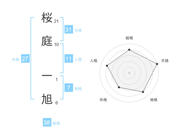 桜庭 一旭さんの総格は38画の4点!