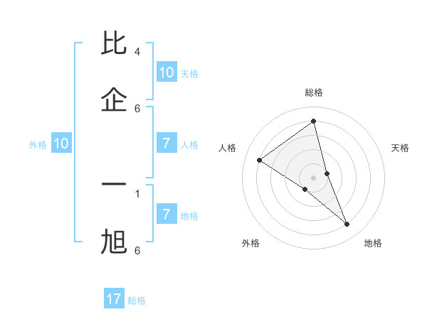 比企 一旭さんの総格は17画の4点!