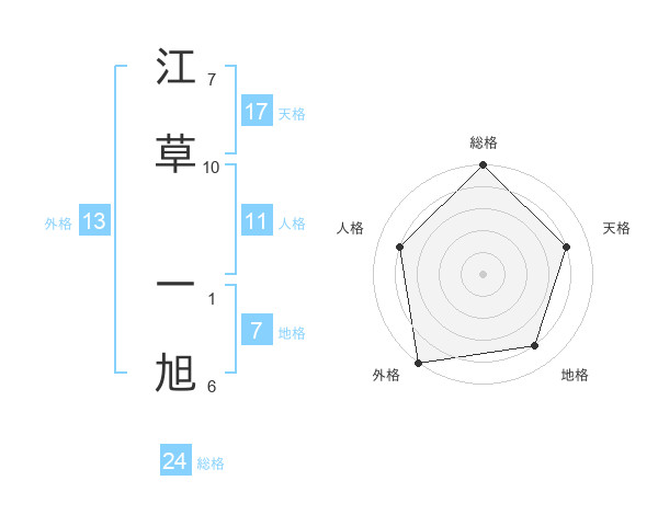 江草 一旭さんの外格は13画の5点!