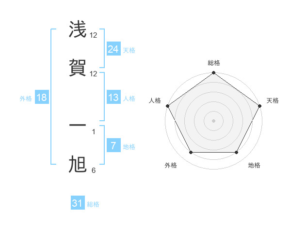 浅賀 一旭さんの総格は31画の5点!