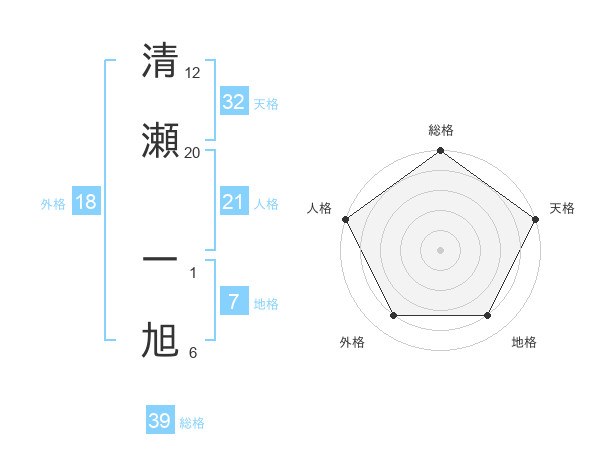 清瀬 一旭さんの総格は39画の5点!