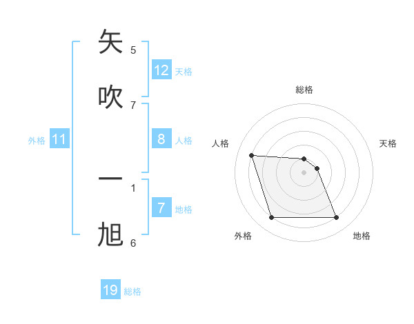 矢吹 一旭さんの総格は19画の1点!