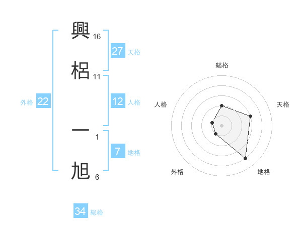 興梠 一旭さんの総格は34画の2点!