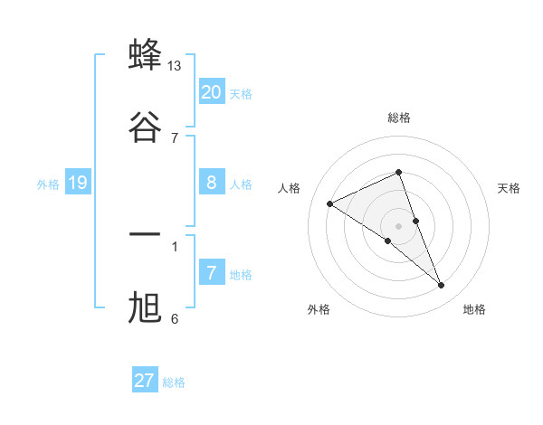 蜂谷 一旭さんを姓名の画数から五運を鑑定