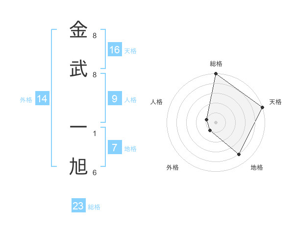 金武 一旭さんの総格は23画の5点!
