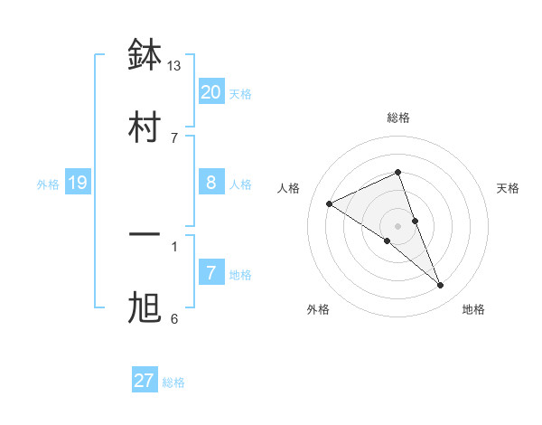 鉢村 一旭さんを姓名の画数から五運を鑑定