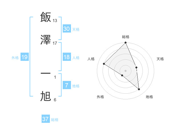飯澤 一旭さんの総格は37画の5点!