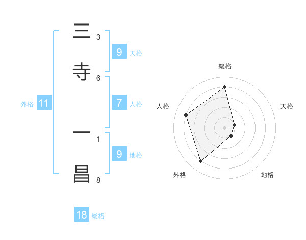 三寺 一昌さんの総格は18画の4点!