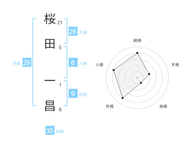 桜田 一昌さんを姓名の画数から五運を鑑定