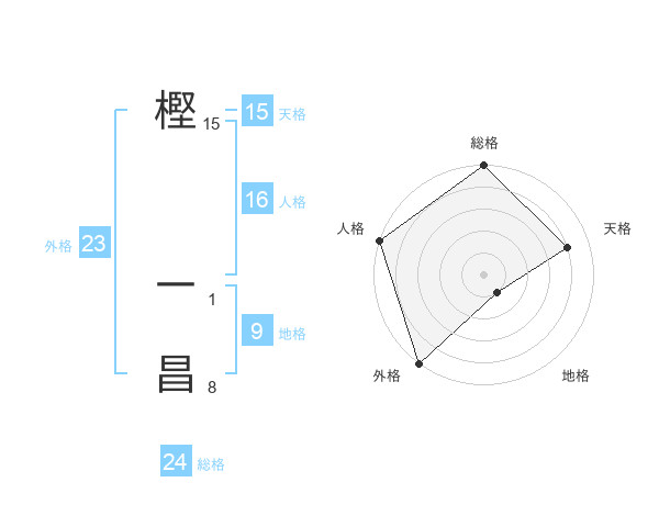 樫 一昌さんの外格は23画の5点!