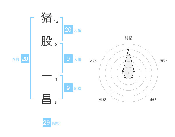 猪股 一昌さんの総格は29画の4点!