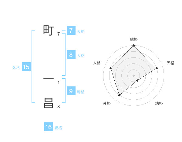 町 一昌さんの総格は16画の5点!